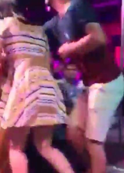 似乎在臺(tái)下的女友這時(shí)沖上臺(tái),將舞女推倒在地,并拉走男子。