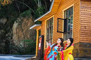老界嶺為游客準備了漢服;邀請知名攝影家、模特(七仙女)現(xiàn)場拍照;穿漢服;看表演、品美食、住木屋;