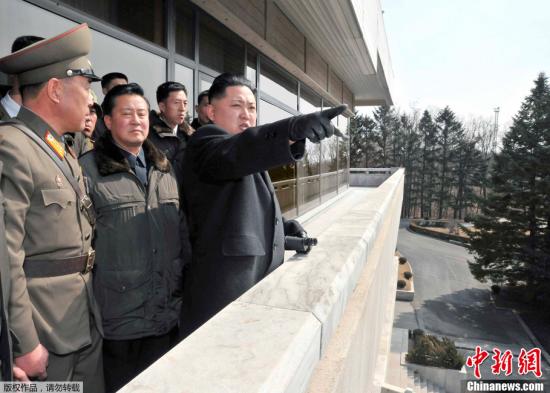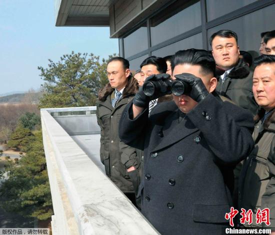 資料圖:由朝中社3月4日公布的照片顯示,朝鮮人民軍最高司令官、朝鮮黨和人民的最高領(lǐng)導(dǎo)者金正恩視察板門(mén)店。