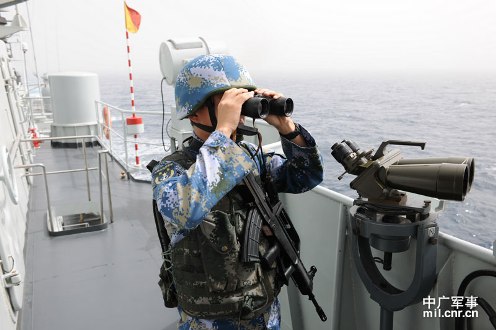 3月21日,海軍第十一護航編隊首次獨立執(zhí)行護航任務(wù)?!扒鄭u”艦警戒哨正在觀察海面情況。米晉國攝影