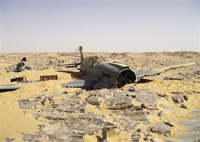 停留在撒哈拉沙漠中的P-40小鷹式戰(zhàn)斗機,隸屬于英國皇家空軍,于1942年二戰(zhàn)期間迫降