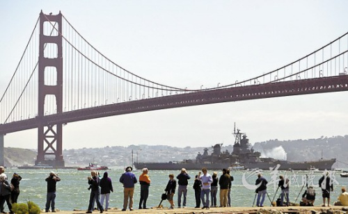 26日,“艾奧瓦”號(hào)通過(guò)金門(mén)大橋。