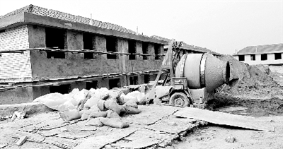 在泰山村村西邊看到大面積在建別墅已經(jīng)停工,一個(gè)農(nóng)民工說,這兒是“龍騰盛世”四期。關(guān)于停工,該農(nóng)民工說:“停幾天還會再開工的,村支書能量大著呢。”