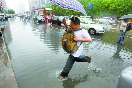 昨天下午3時,記者在東風路與文化路交叉口的地下隧道內(nèi)看到,有轎車已被水淹滅了,難以動彈,地下隧道中的積水可沒過輪胎。金水路與東明路交叉口西約100米路南,積水嚴重,水深幾乎沒過轎車輪胎。豐慶路與三全路交叉口附近的豐慶路小學(xué)門前也是宛如“海洋”,積水沒過自行車大半個車輪。放學(xué)的部分小學(xué)生無法通行,被人背著過路。巡防隊員解釋稱,此處地勢低洼,排水不暢,逢雨必淹,孩子們雨天上下學(xué)很不安全。