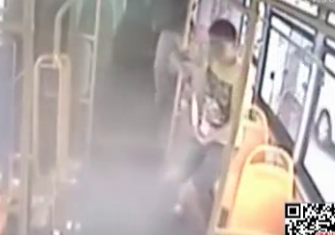 男子公交上吸煙拿滅火器狂噴
