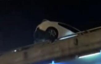 小車“掛”立交 撞車現(xiàn)驚險(xiǎn)一幕
