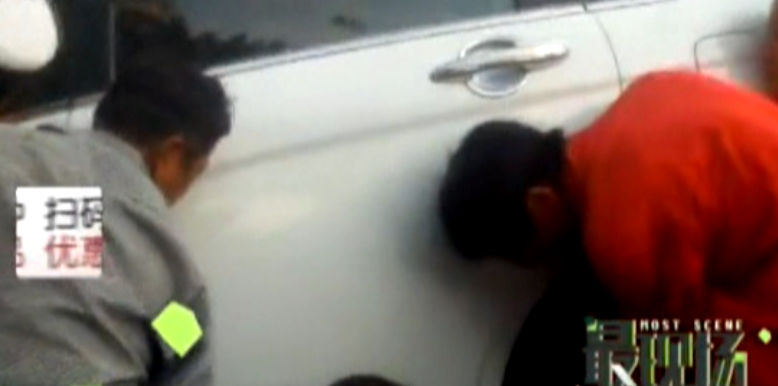 男子被困車下 眾人抬車救人