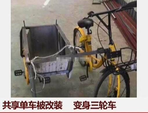 • 共享單車被改裝 變身三輪車