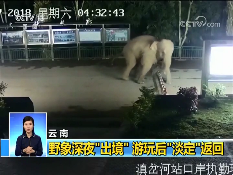 云南 野象深夜“出境” 游玩后“淡定”返回