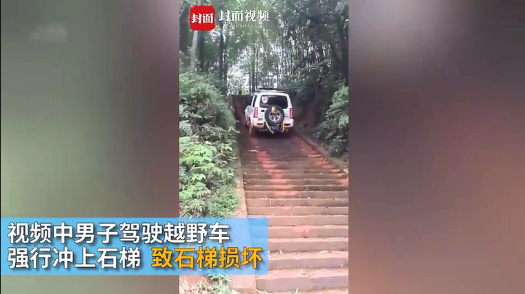 男子開車碾碎千年古寺石梯