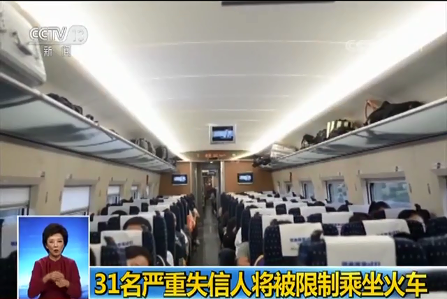 • 嚴重失信人將被限制乘坐火車