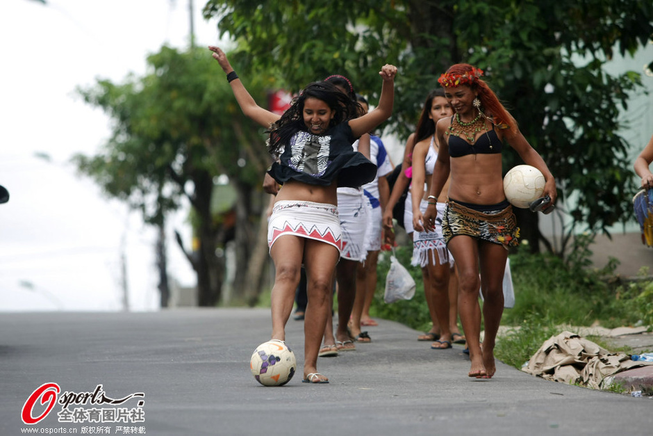 2014年6月5日,熱帶雨林為世界杯而瘋狂,亞馬遜女性土著盡享足球快樂(lè)。