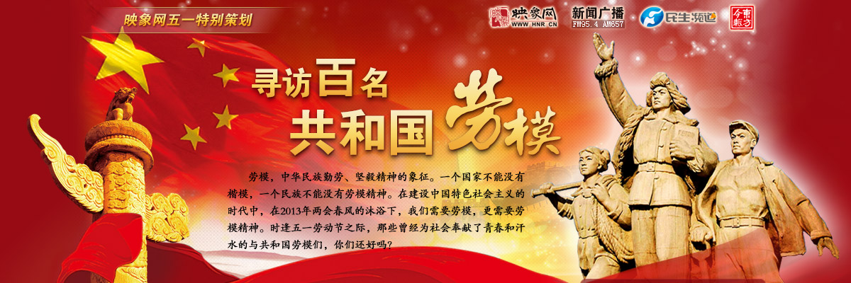 繼去年映象網(wǎng)攜手河南省總工會(huì)、鄭州市總工會(huì)、河南人民廣播電臺(tái)共同發(fā)起,“五一勞動(dòng)節(jié)——尋訪一百名共和國(guó)勞?!被顒?dòng)之后,今年映象網(wǎng)繼續(xù)誠(chéng)邀您和我們一同在鄭州市范圍內(nèi)尋訪100位市級(jí)或市級(jí)以上勞模。映象網(wǎng)發(fā)出倡議:向勞模獻(xiàn)愛(ài)心 讓愛(ài)傳遞四方