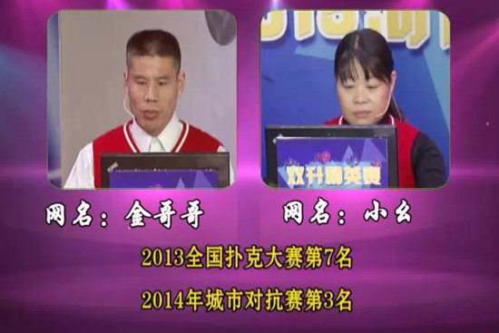 今天將要進(jìn)行的是2015河南省電視雙升精英賽,這也是繼2014城市對(duì)抗賽之后進(jìn)行的個(gè)人競(jìng)技比賽,所有參賽選手,都是各地市參加城市對(duì)抗賽的優(yōu)秀牌手,今天進(jìn)行的是上半?yún)^(qū)第1輪的第場(chǎng)比賽,是由新鄉(xiāng)推選的“溪水”和“雙升找我”對(duì)陣來自濟(jì)源推選的“小幺”和“金哥哥”。今天雙方選手都是信心百倍,誓要拿系第一場(chǎng),究竟結(jié)果如何呢?今晚21點(diǎn)40分《雙升英雄會(huì)》為您揭曉答案!