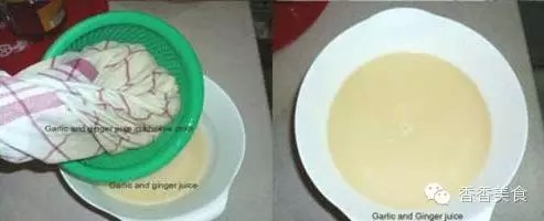 1.蒜頭去皮,姜去皮切小片,放入榨汁機榨汁,或者放入攪拌器打成漿,用網(wǎng)布隔渣,絞出汁。