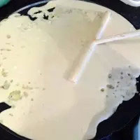 5. 倒入面糊,用小棒慢慢攤開(kāi)。