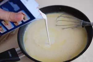 1、蛋黃、細砂糖、牛奶全部倒入小鍋中,并攪拌均勻。