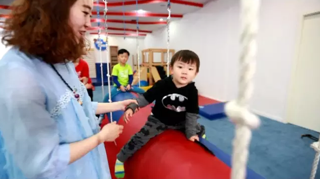 太空滑索、大熱狗秋千、攀巖、海洋池、秋千,別看一個小小的教室,它容納了500件不同的教具,看似是家長陪著寶寶玩,其實這些課程設計有豐富的意義,它讓孩子的體能心智都能得到提升。