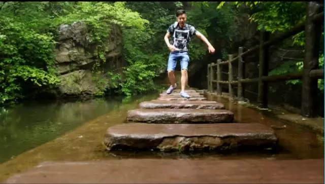 看到這棵樹了沒有,據(jù)說這個(gè)葉子有個(gè)奇特的味道,是一股橘子味,在這山上還有很多珍貴野生的樹種,漫山遍野一股清香襲來,再往前走就可以看到天井了,天井四面峭壁,犬牙交錯(cuò)高深莫測(cè)。