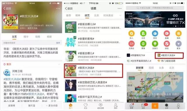 節(jié)目播出至今,“脫貧大決戰(zhàn)”早已在網(wǎng)絡(luò)社交平臺上引起了網(wǎng)友熱議。人民網(wǎng)、光明網(wǎng)、央視網(wǎng)、中國網(wǎng)、環(huán)球網(wǎng)、騰訊、新浪、網(wǎng)易、今日頭條、百度等數(shù)百家媒體進行轉(zhuǎn)載,新浪微博、微信公眾號等大量自媒體號廣泛傳播。統(tǒng)計顯示,截至11月30日,《脫貧大決戰(zhàn)》在新浪微博話題綜合榜上排名第七,全國綜藝榜排名第二,新浪微博閱讀量達(dá)到了7990萬。