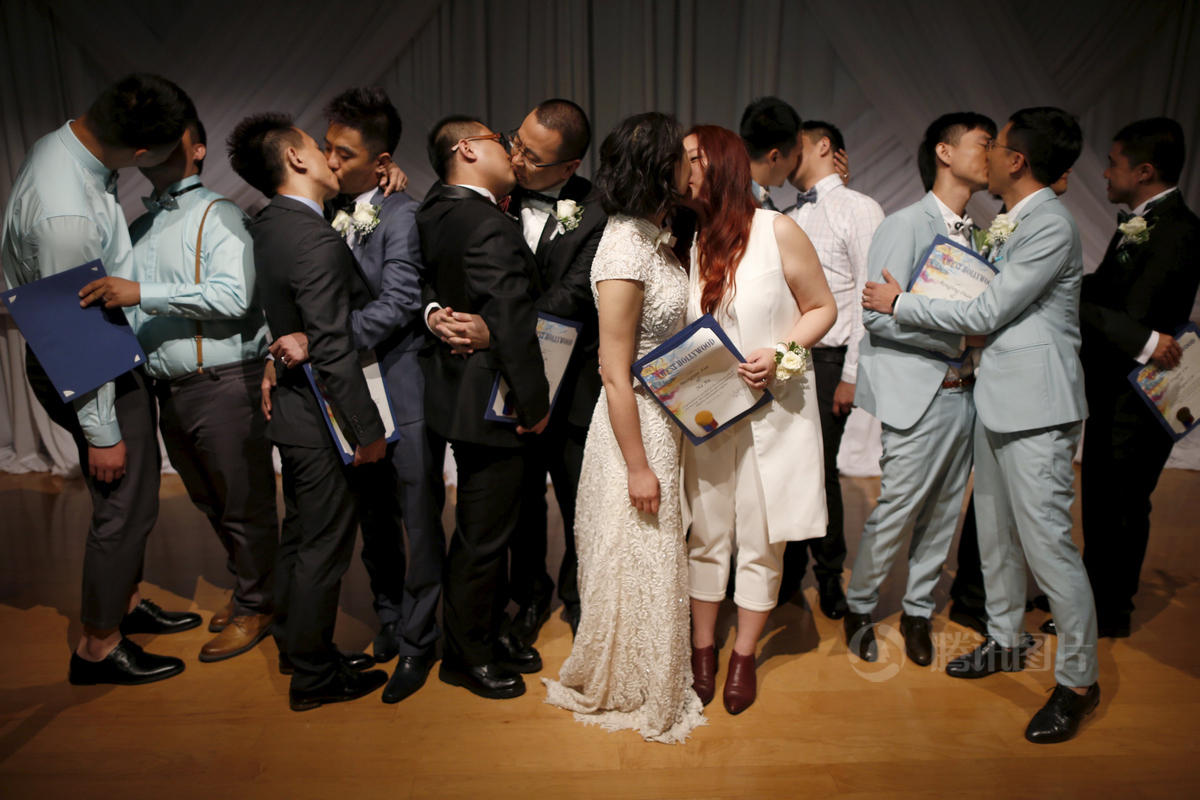 6月9日,美國(guó)加州洛杉磯,七對(duì)來自中國(guó)的同性戀情侶舉行集體婚禮,婚禮儀式由中國(guó)大陸一家互聯(lián)網(wǎng)巨頭資助。加州是美國(guó)同性戀婚姻合法的30個(gè)州之一,婚禮費(fèi)用均由贊助企業(yè)承擔(dān)。