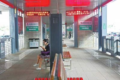 不過,與以往輝煌時(shí)候相比,如今BRT客流量可算是銳減。昨日中午,記者沿著農(nóng)業(yè)路BRT沿線查看,除了農(nóng)業(yè)路花園路站內(nèi)人數(shù)稍多一些之外,其他站點(diǎn)平均不足10個(gè)人。與新建的寬敞明亮的站臺(tái)相比,乘客頗為冷清(如圖)。