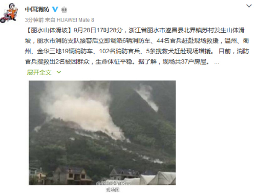 據(jù)浙江省麗水市公安消防支隊(duì)官方微博消息,2016年9月28日17點(diǎn)28分許,遂昌縣北界鎮(zhèn)蘇村上村自然村發(fā)生山體滑坡。